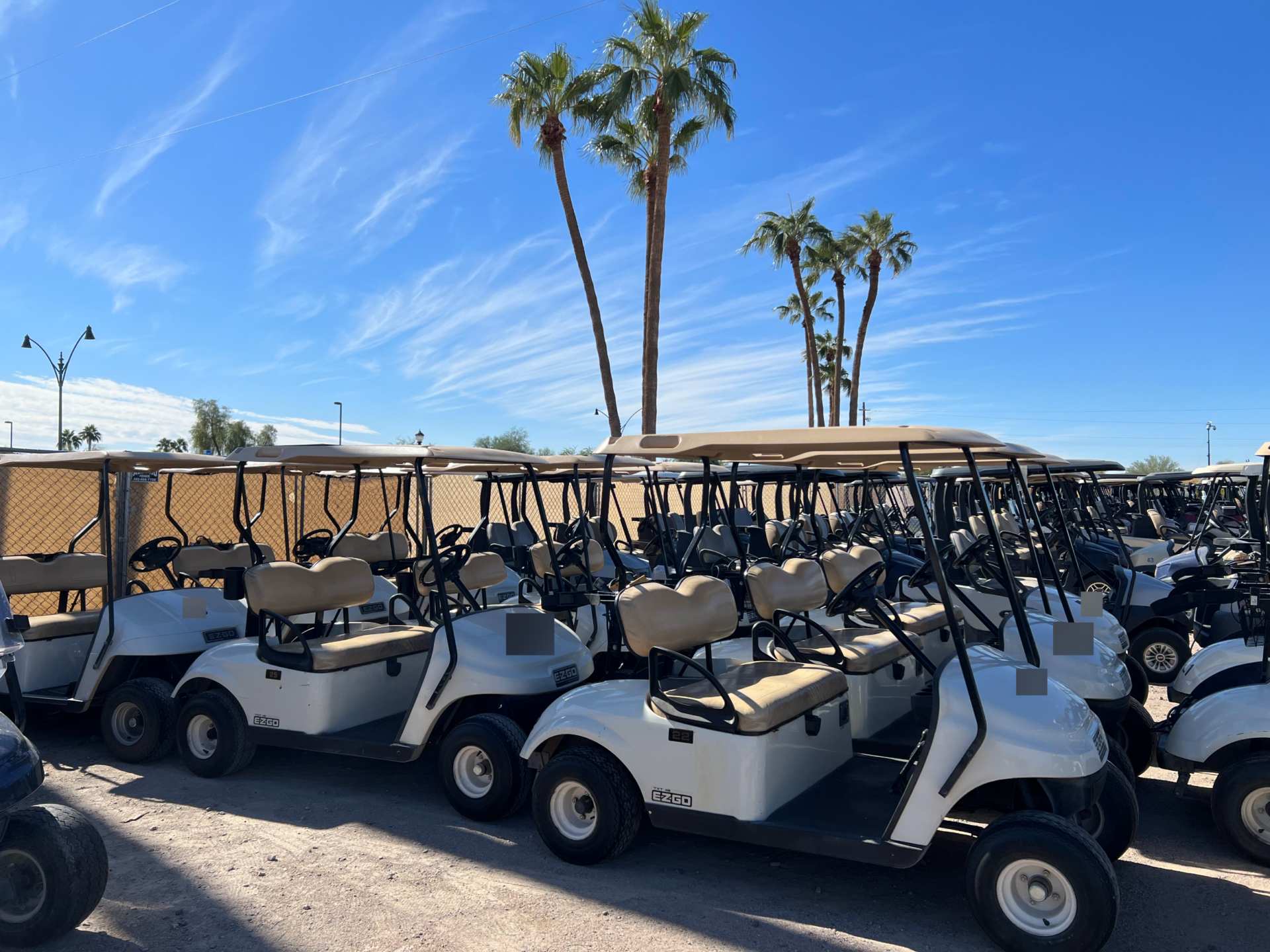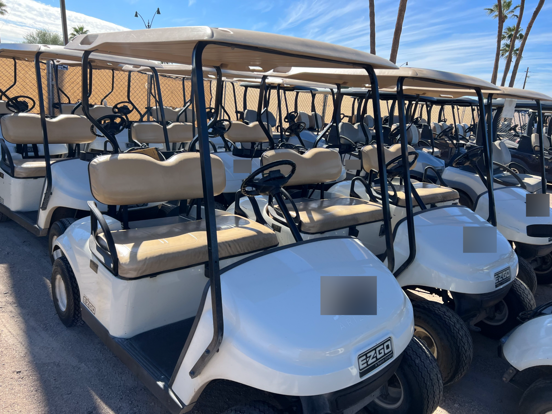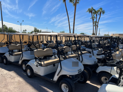 Notes: White bodies, beige tops, and beige seats. Carts will need batteries. Great builder carts.