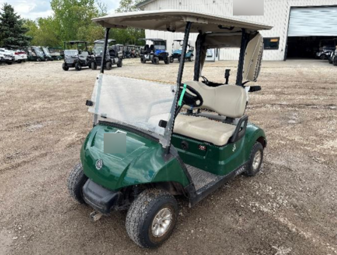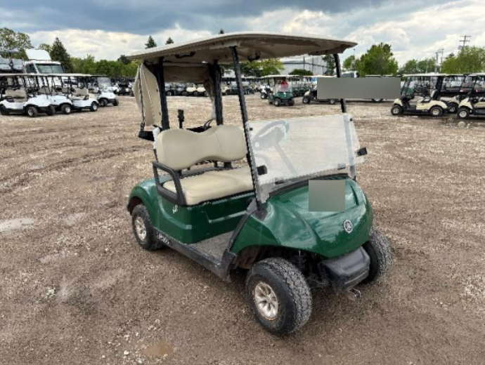 Notes: Green bodies, beige tops, & beige seats. W/ dual sand bottle holders, clear windshields, beige bag covers, & info holders. Minimal body scratches & some carts need recovered seats. Average condition.