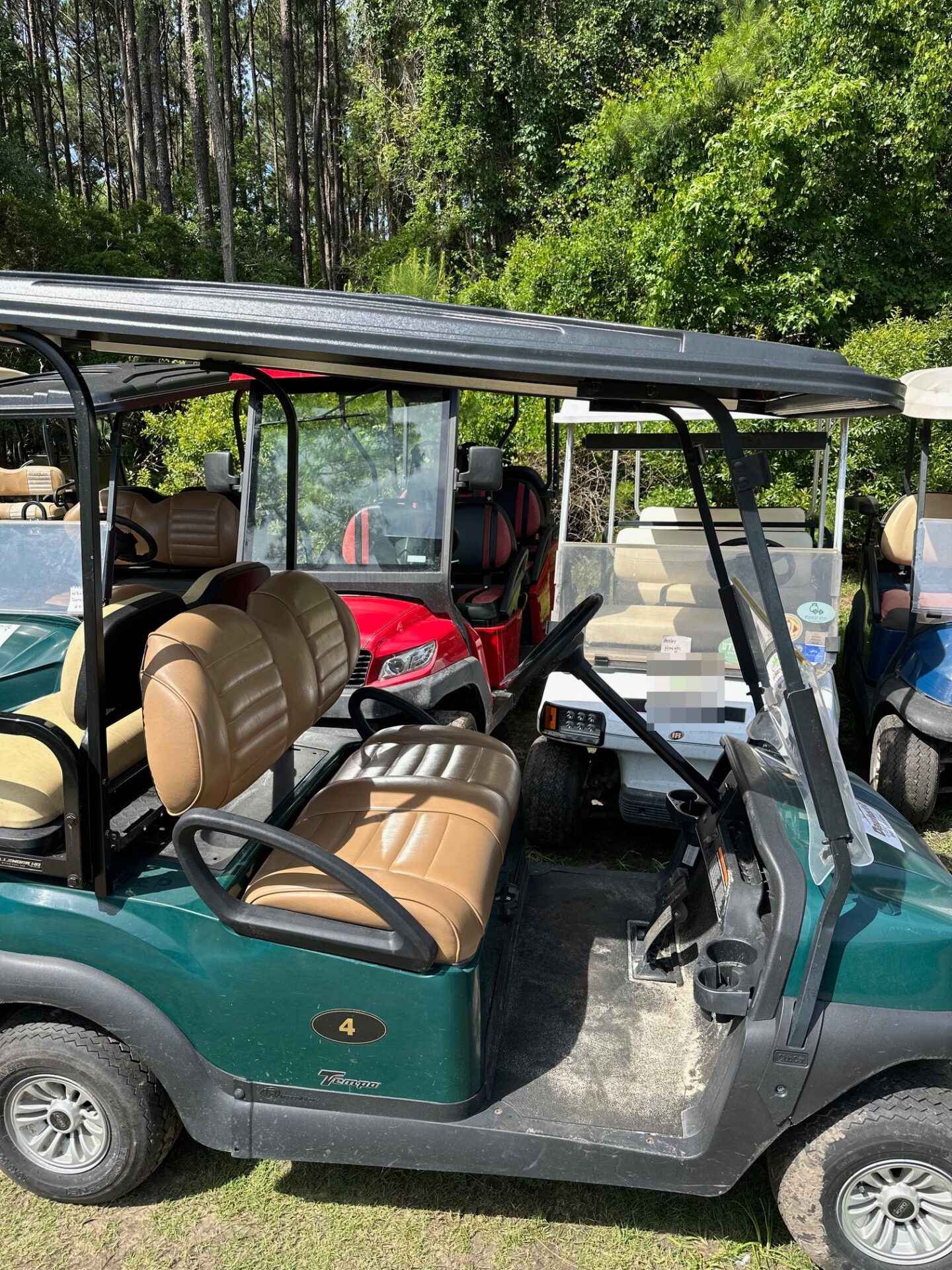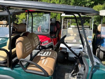 Green bodies, black tops and premium brown seats. Equipped with 2025 batteries, rear seats and extended roofs.
