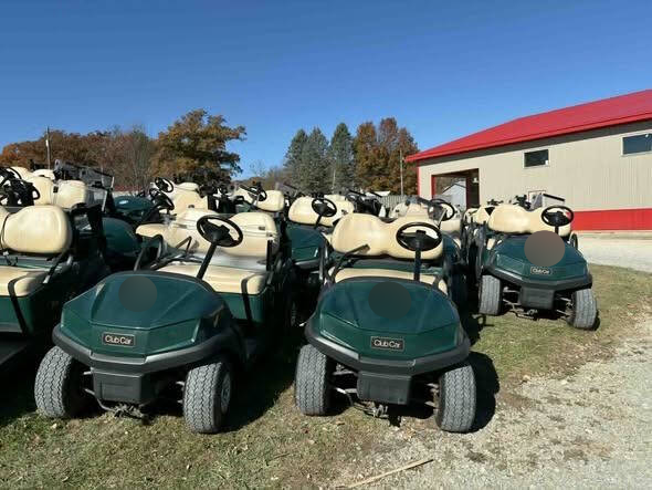 Green bodies, beige tops, and buff seats. Equipped with original Trojan batteries. Average condition. Rated 7.