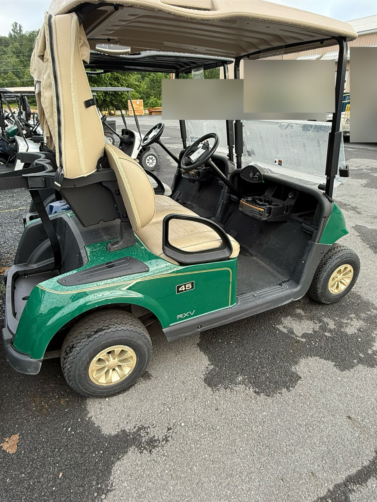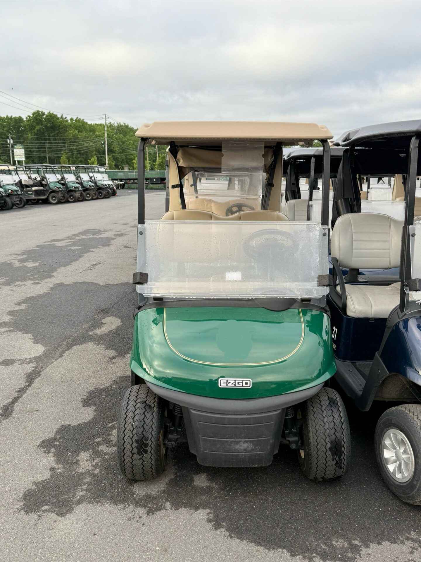 Forest green bodies, tops, and premium beige seats. Equipped with windshields and state-of-charge meters. Available now!