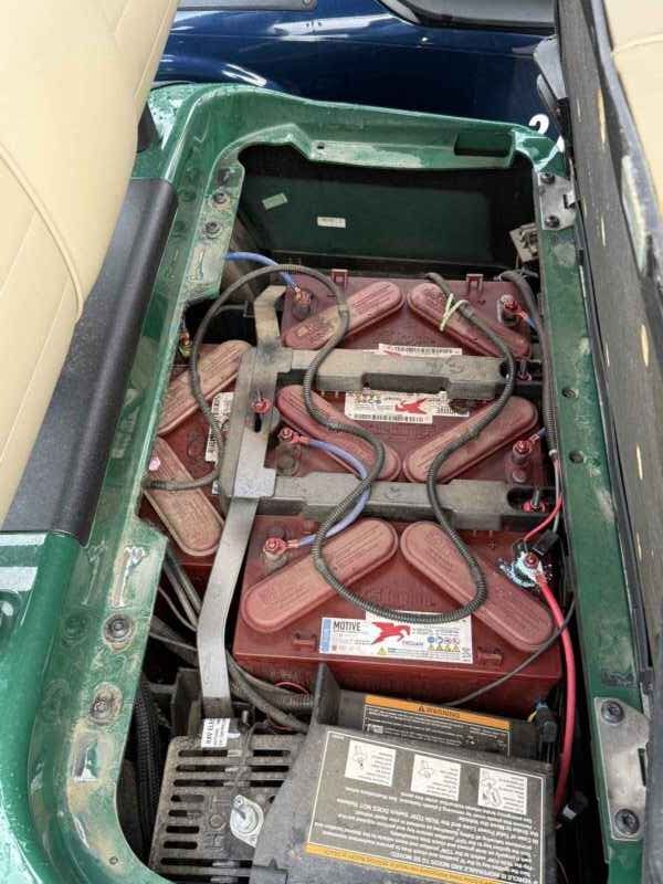 Notes: Forest green bodies, tops, and premium beige seats. Equipped with windshields and state-of-charge meters. Available now!