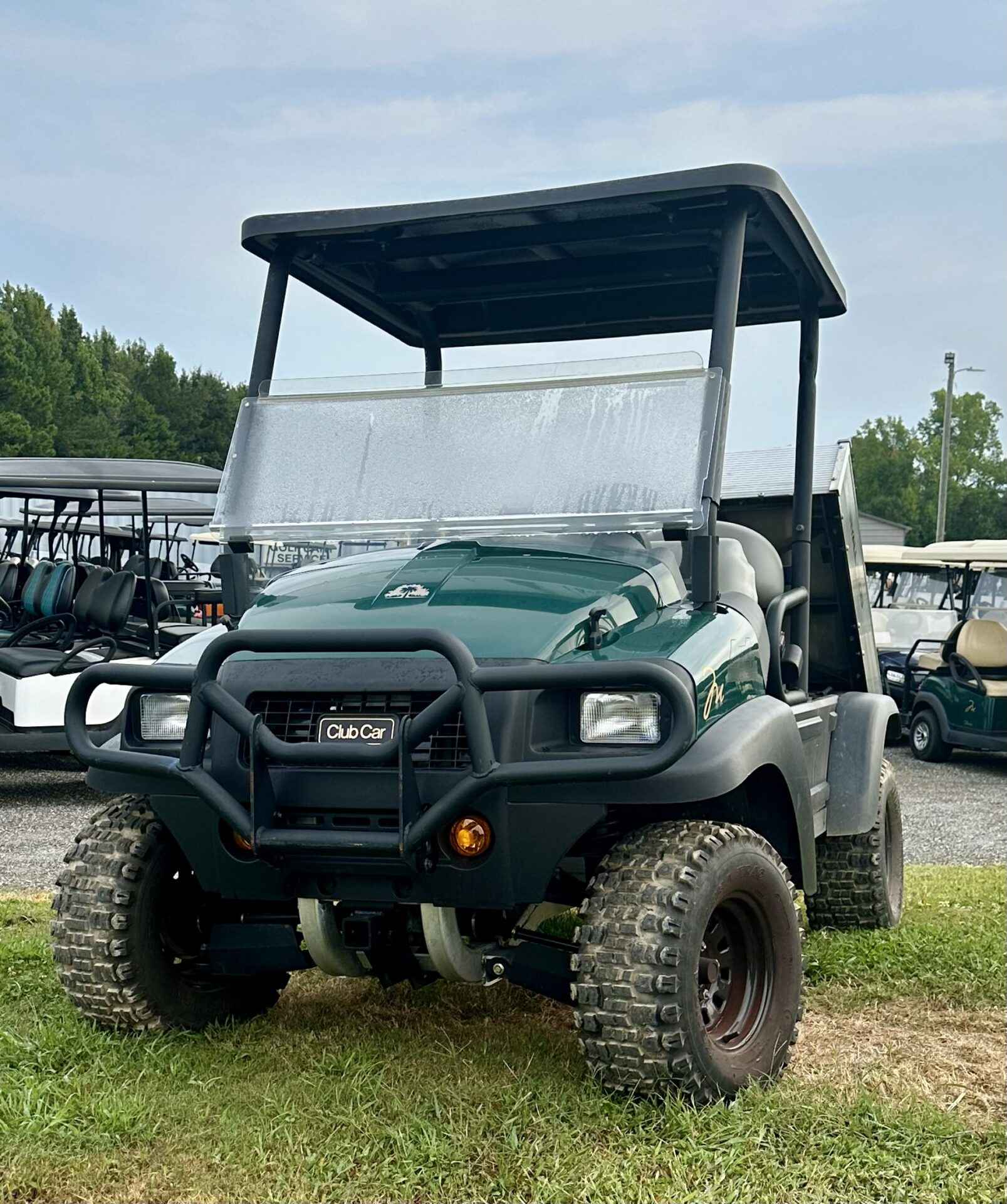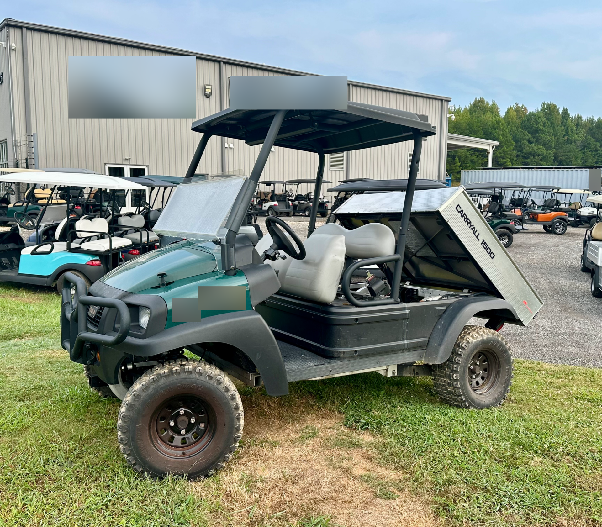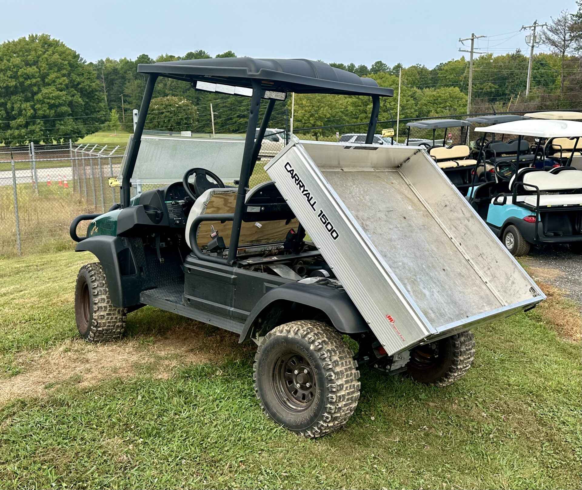 Notes: 4×4 green bodies, black tops and gray seats. Equipped with a hydraulic dump bed. These carts are in good shape and run well. Average condition.