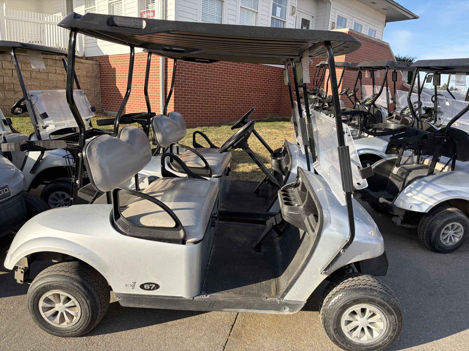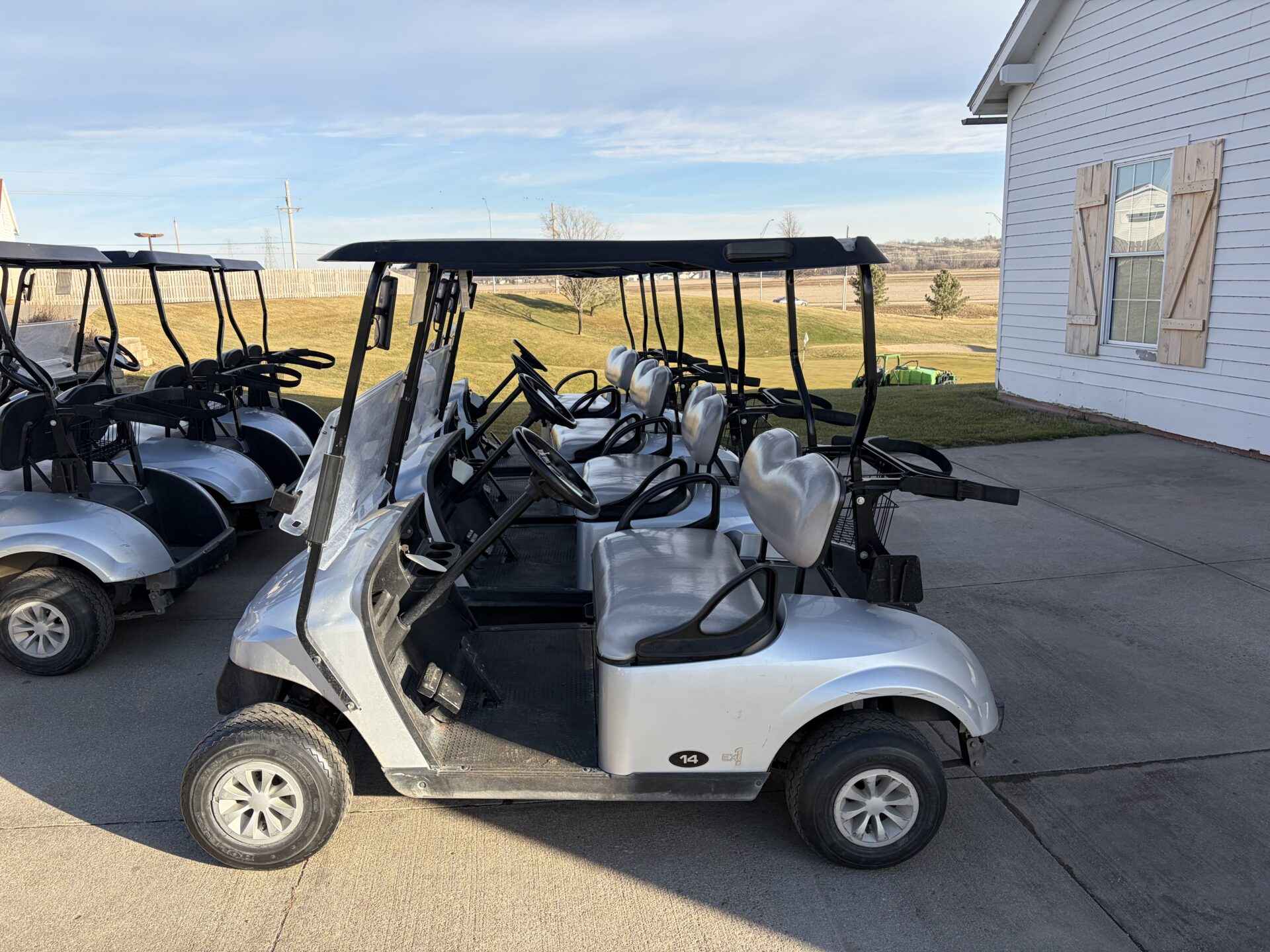 Notes: Platinum bodies, black tops, and gray seats. Equipped with EX1 engines. Seasonally used from May through October. Carts run well. Average condition, serviced annually.