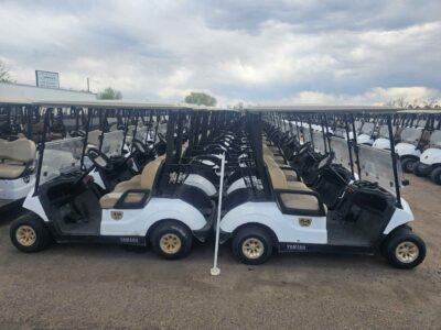 White bodies, beige tops, and premium beige seats. No rust. Well serviced. Bodies and tires are decent. Seat bottoms are cracked.