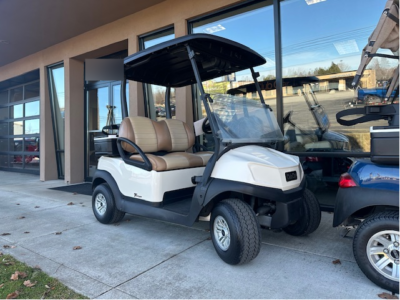 Cashmere bodies, black tops, and premium two-toned seats. Equipped with coolers, ball & club washers, and USB.