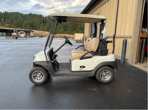 Notes: Metallic pearl bodies, beige tops, and premium beige seats. Equipped with headlights, ball & club washer, cooler, sand & seed bottles, club covers, and USB.