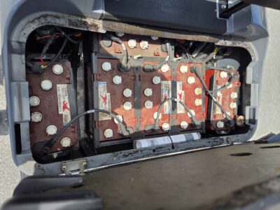 Notes: Gray and red bodies with black tops, seats, and uprights. Never used but requires new batteries and seats. Equipped with headlights.