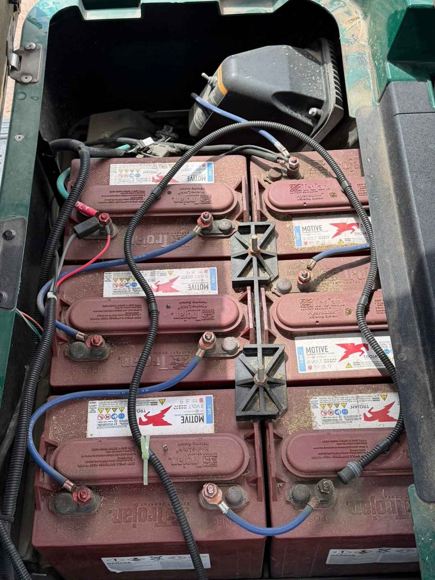 Green bodies, beige tops, and seats. Equipped with original batteries.