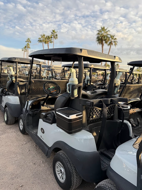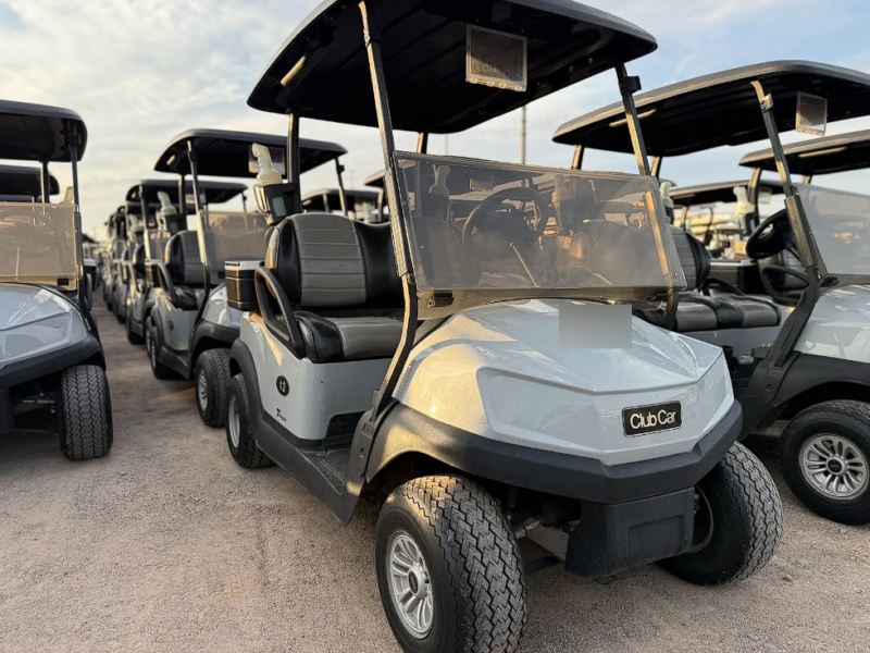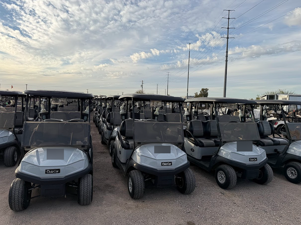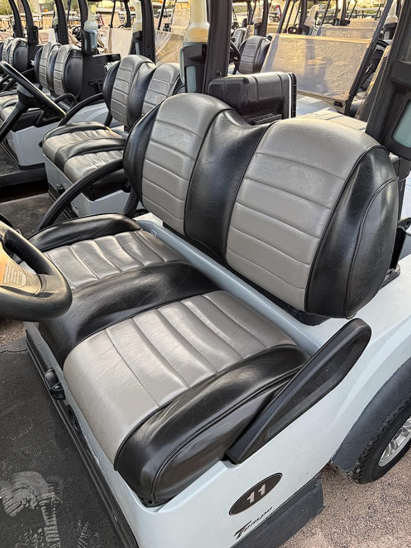 Notes: Platinum bodies, black tops, and upgraded mixed color black and gray seats. Very clean carts.