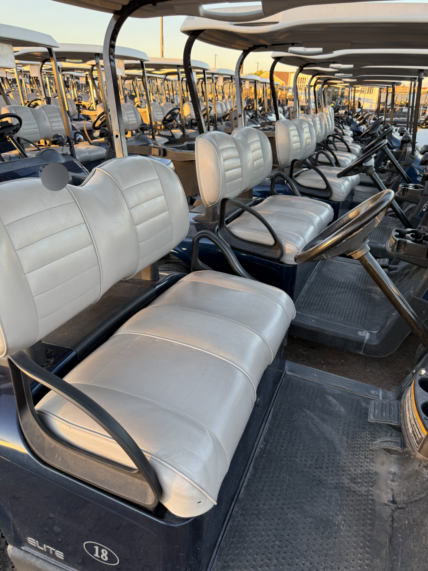 Blue bodies, beige tops, and upgraded gray seats. Equipped with JBL speakers.