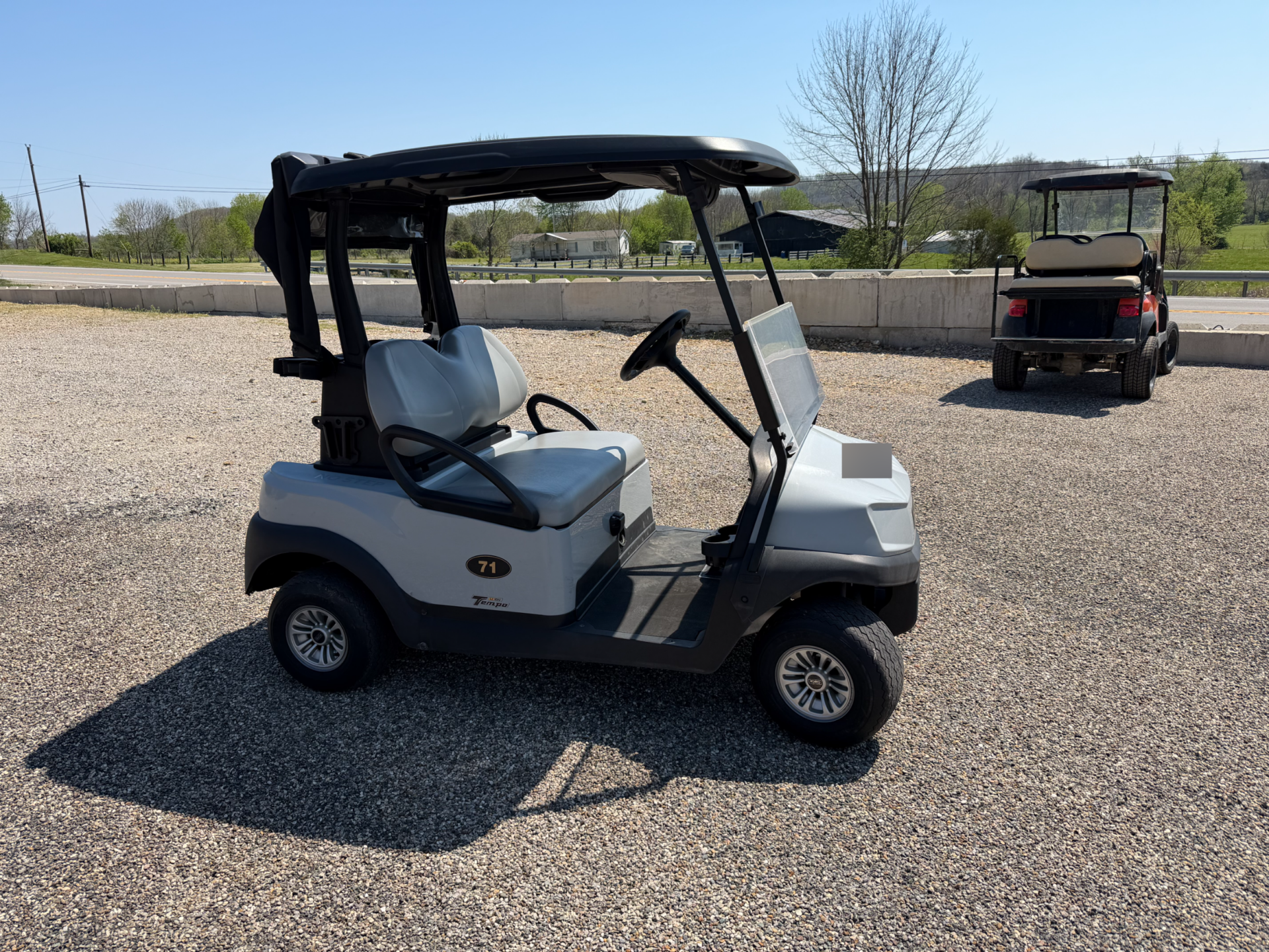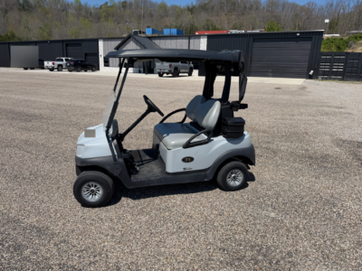 Platinum bodies, black tops, and gray seats. Equipped with chargers, windshields, sand boxes, and club covers. Above average condition.